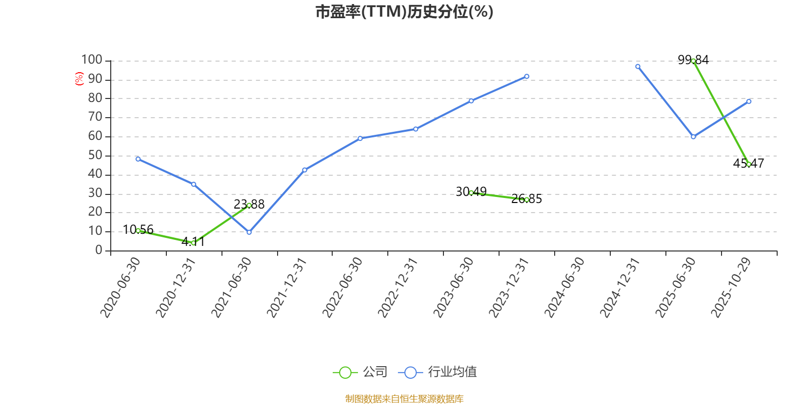 市盈率、市净率为负时,不显示当期分位数,会导致折线图中断。