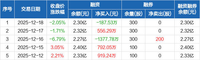 厚普股份:融资净偿还187.53万元,融资余额2.3亿元(12-18)