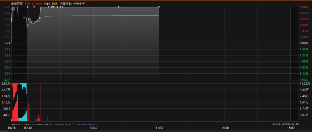 消息面上,10月15日晚间,贵州百灵发布公告称,旗下全资子公司百灵毓秀(珠海)医药有限公司(以下简称“百灵毓秀”)收到国家药品监督管理局(NMPA)核准签发的《药物临床试验批准通知书》,由百灵毓秀申报的糖宁通络片临床试验申请获得批准,同意本品开展用于2型糖尿病的临床试验。