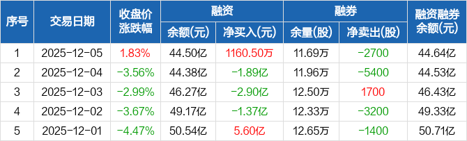 香农芯创:融资净买入1160.5万元,融资余额44.5亿元(12-05)