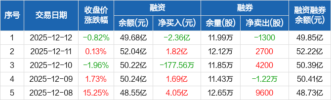 香农芯创:融资净偿还2.36亿元,两市排名第八(12-12)