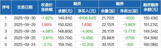 胜宏科技:融资净偿还8108.64万元,融资余额149.81亿元(09-30)
