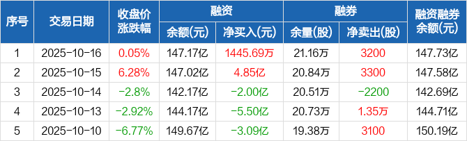 胜宏科技:融资净买入1445.69万元,融资余额147.17亿元(10-16)