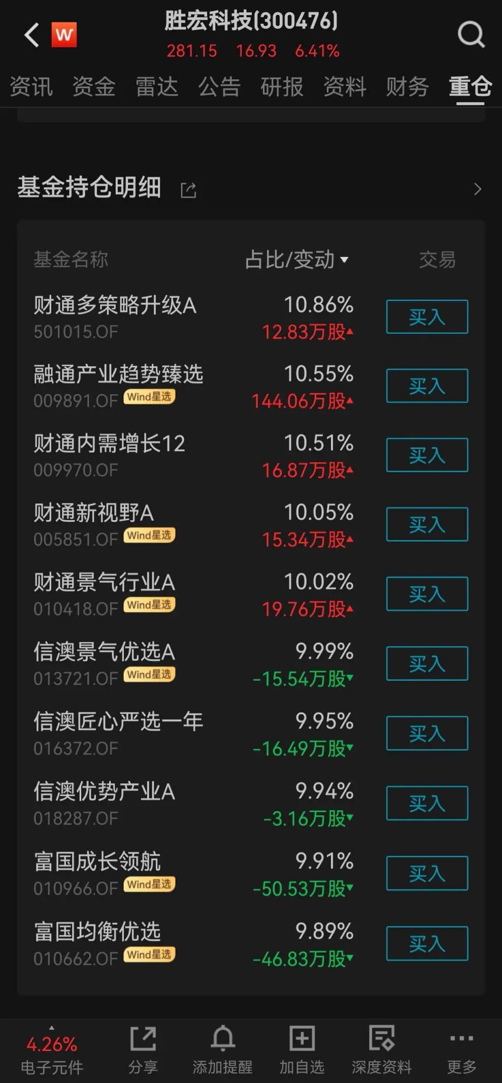 Wind数据显示,除了睿远基金,胜宏科技还被富国、信达澳亚、财通、融通基金等旗下多只产品重仓持有。