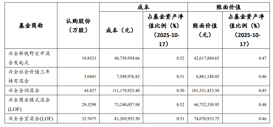 根据公告,乔迁管理的兴全新视野定开混合基金、兴全商业模式优选混合基金分别认购18.85万股、29.53万股,谢治宇管理的兴全社会价值三年持有混合基金、兴全合润混合基金、兴全合宜混合基金分别认购了3.04万股、44.83万股、32.77万股。总成本约为7.70亿元。