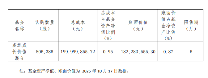 10月20日,睿远基金也发布公告称,傅鹏博管理的睿远成长价值混合基金参与了胜宏科技非公开发行股票的认购,认购数量为80.64万股,总成本约为2亿元,总成本占基金资产净值比例为0.95%,限售期为6个月。
