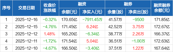 胜宏科技:融资净偿还7911.45万元,融资余额170.65亿元(12-16)