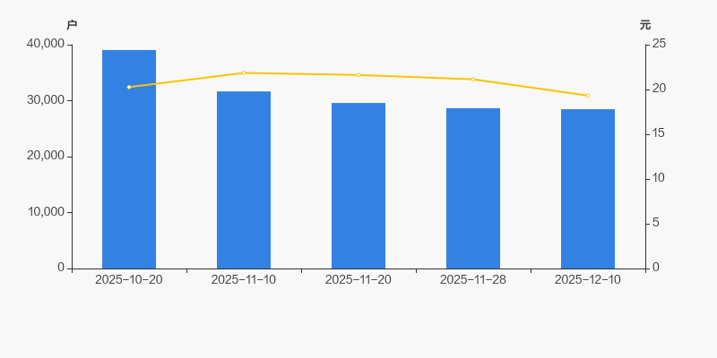 2025年10月20日至今,公司股东户数显著下降,区间跌幅为27.08%。2025年10月20日至2025年12月10日区间股价下降4.69%。
