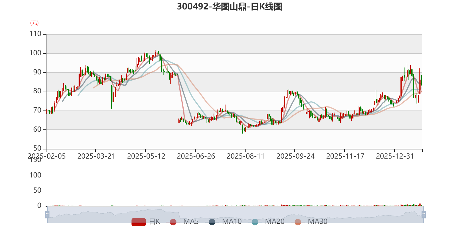 中证智能财讯华图山鼎(300492)1月27日晚间披露2025年度业绩预告,预计2025年归母净利润2.8亿元至4.2亿元,同比增长428.38%-692.57%;扣非净利润预计2.58亿元至3.87亿元,同比增长955.37%-1483.06%。以1月27日收盘价计算,华图山鼎目前市盈率(TTM)约为40.24倍-60.35倍,市净率(LF)约56.55倍,市销率(TTM)约5.34倍。