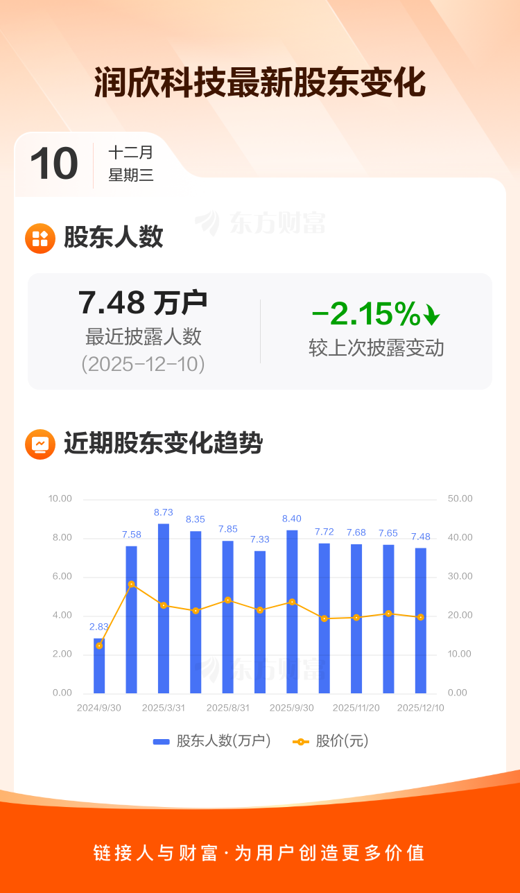润欣科技:截至12月10日最新股东户数7.48万户,较上期减少2.15%