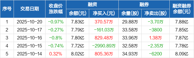 温氏股份:融资净买入370.57万元,融资余额7.83亿元(10-20)