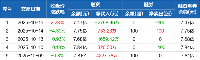 高澜股份:融资净偿还2798.46万元,融资余额7.47亿元(10-15)