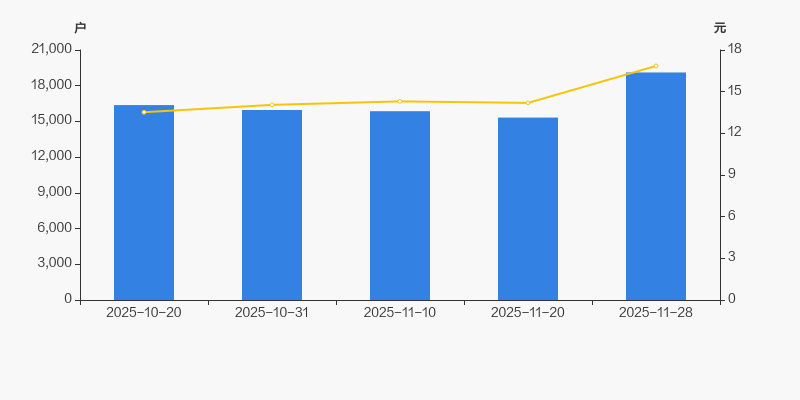 2025年10月20日至今,公司股东户数显著增长,区间涨幅为16.74%。2025年10月20日至2025年11月28日区间股价上涨24.63%。