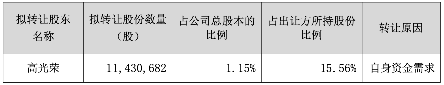 本次询价转让的出让方高光荣为公司控股股东及实际控制人之一,并担任公司董事长,持有公司股份比例超过5%。截至公告披露日,高光荣持有新易盛约7344.54万股,占公司总股本比例为7.39%。