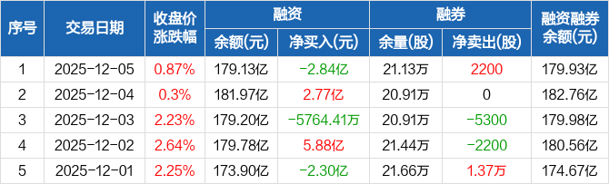 新易盛:融资净偿还2.84亿元,两市排名第五(12-05)