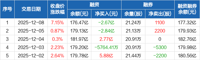 新易盛:融资净偿还2.67亿元,融资余额176.47亿元(12-08)