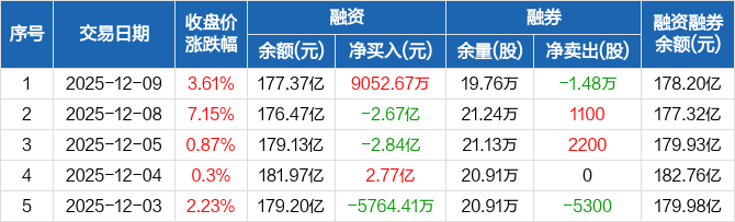 新易盛:融资净买入9052.67万元,融资余额177.37亿元(12-09)