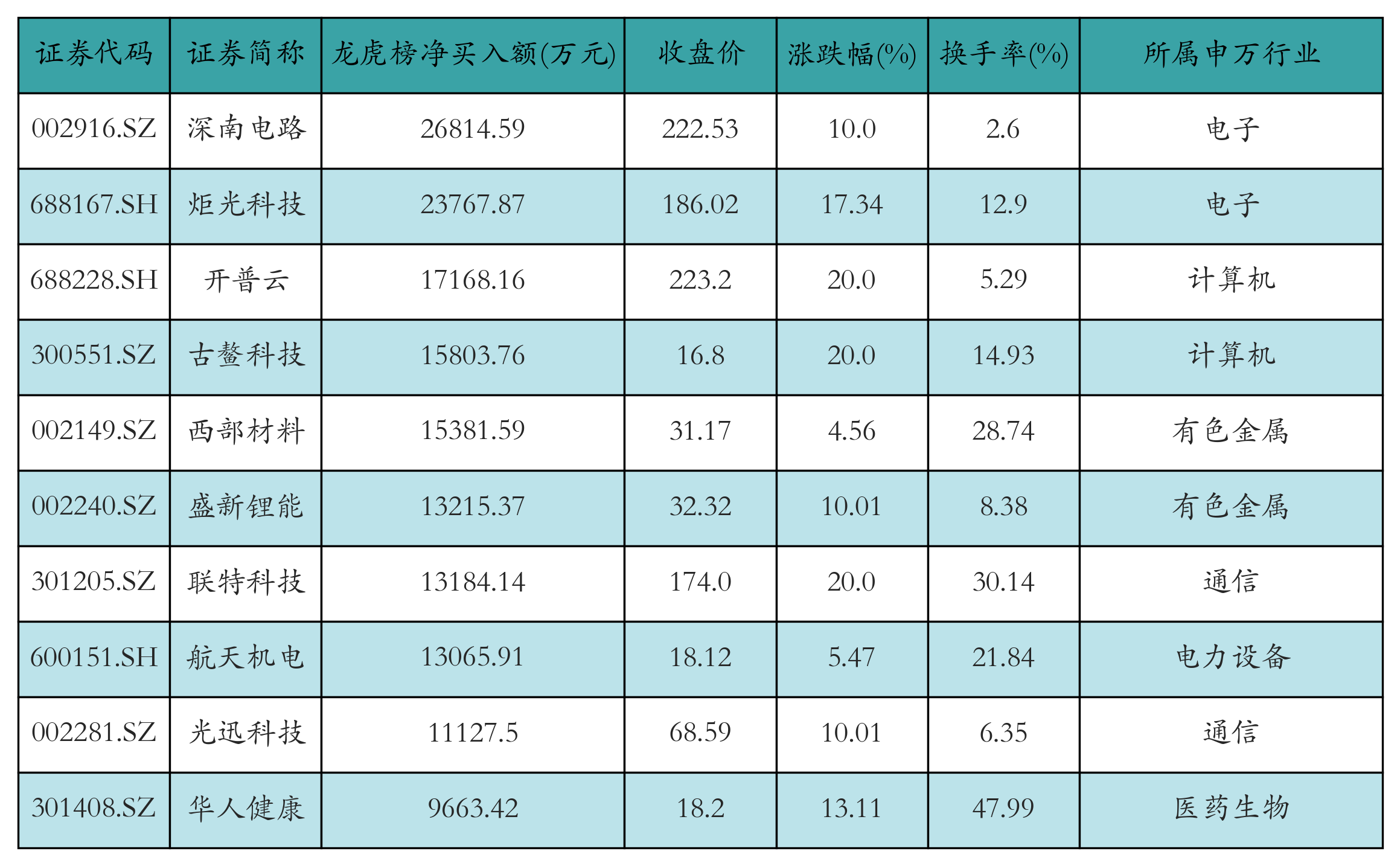 昨日龙虎榜营业部净买入额前10详情见下表: