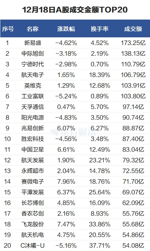 活跃个股:新易盛成交173亿元 N元创换手率78%
