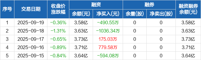 川金诺:融资净偿还490.55万元,融资余额3.58亿元(09-19)