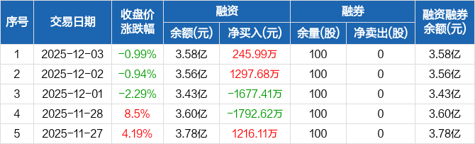 川金诺:融资净买入245.99万元,融资余额3.58亿元(12-03)
