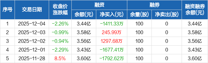 川金诺:融资净偿还1411.33万元,融资余额3.44亿元(12-04)