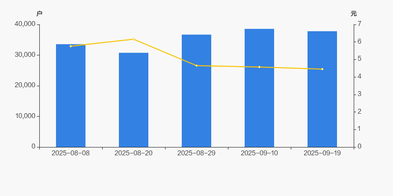 2025年8月8日至今,公司股东户数显著增长,区间涨幅为12.63%。2025年8月8日至2025年9月19日区间股价下降22.74%。