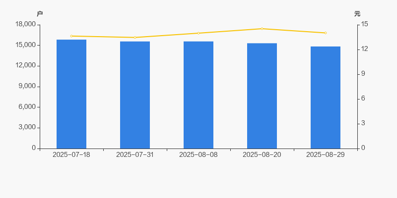 截至2025年8月29日,公司最新总股本为2亿股,其中流通股本为1.6亿股。户均持有流通股数量由上期的1.05万股上升至1.08万股,户均流通市值15.13万元。