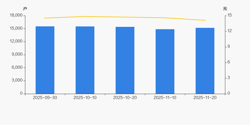 截至2025年11月20日,公司最新总股本为2亿股,其中流通股本为1.6亿股。户均持有流通股数量由上期的1.08万股下降至1.06万股,户均流通市值14.88万元。