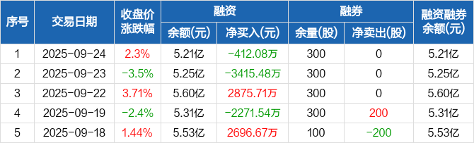 科大国创:融资净偿还412.08万元,融资余额5.21亿元(09-24)