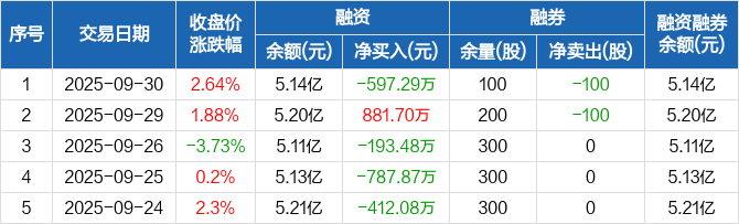 科大国创:融资净偿还597.29万元,融资余额5.14亿元(09-30)