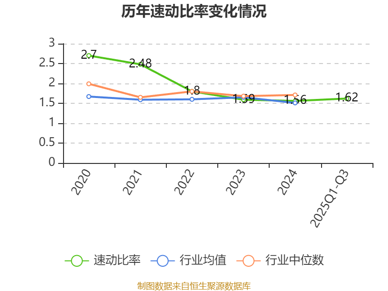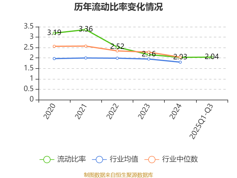 2025年前三季度,公司流动比率为2.04,速动比率为1.62。