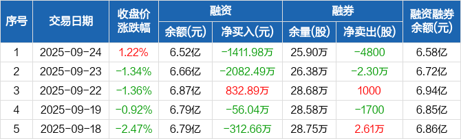 健帆生物:融资净偿还1411.98万元,融资余额6.52亿元(09-24)