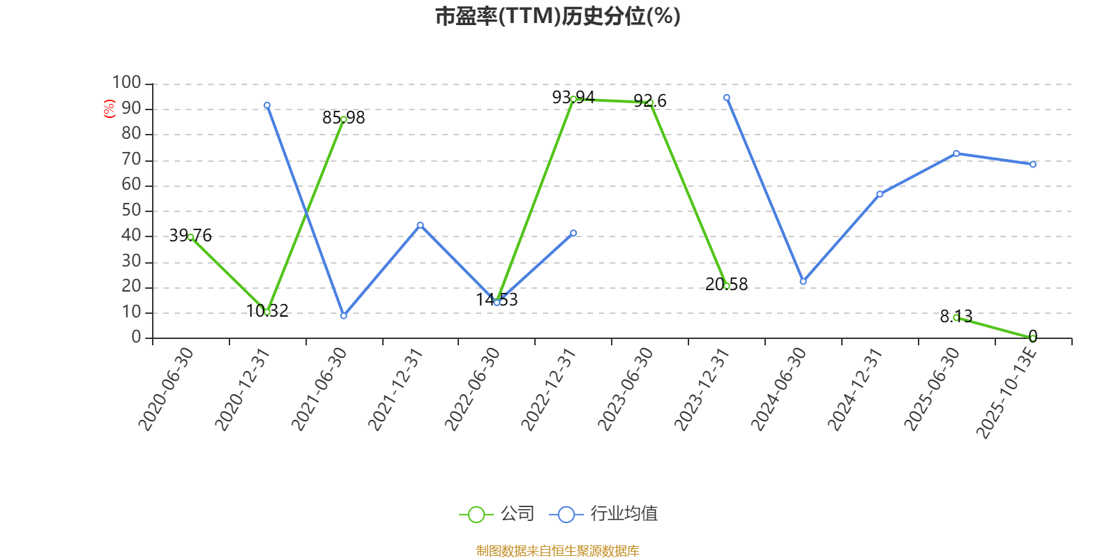 市盈率、市净率为负时,不显示当期分位数,会导致折线图中断。