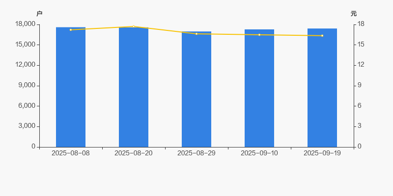 截至2025年9月19日,公司最新总股本为1.82亿股,其中流通股本为1.21亿股。户均持有流通股数量由上期的7000股下降至6948股,户均流通市值11.37万元。