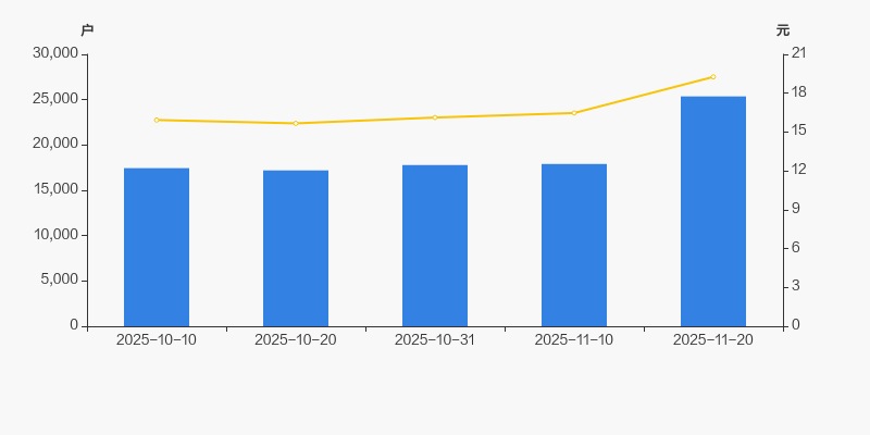 自2025年10月20日以来,公司股东户数连续3期上涨,截至目前增幅为47.49%。2025年10月20日至2025年11月20日区间股价上涨22.91%。