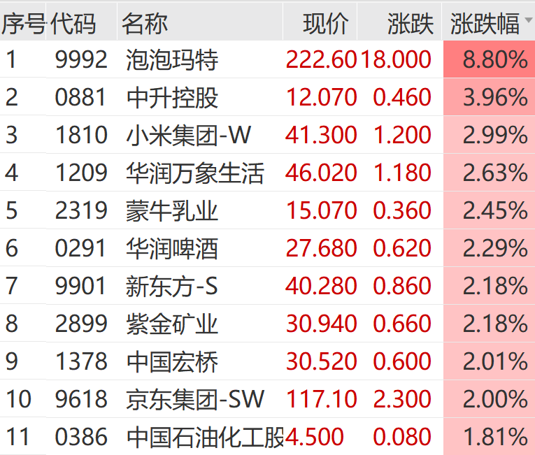 港股市场上午反复震荡,截至午间收盘,三大指数均飘红;泡泡玛特涨近9%,领涨恒指成份股。
