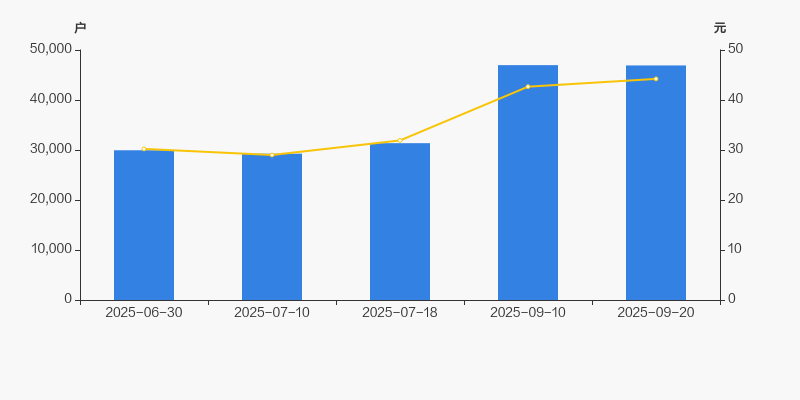 2025年6月30日至今,公司股东户数显著大幅增长,区间涨幅达56.65%。2025年6月30日至2025年9月20日区间股价上涨46.33%。
