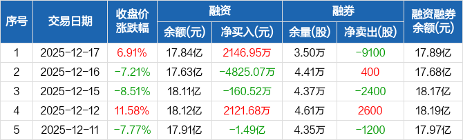 长芯博创:融资净买入2146.95万元,融资余额17.84亿元(12-17)