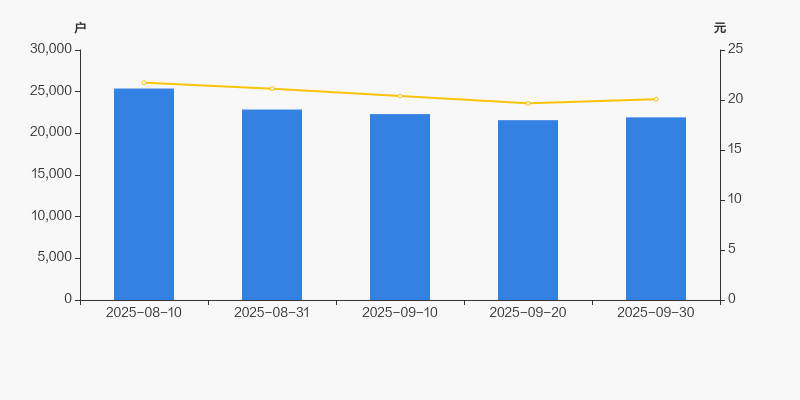 2025年8月10日至今,公司股东户数显著下降,区间跌幅为13.63%。2025年8月10日至2025年9月30日区间股价下降7.59%。
