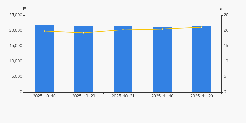 截至2025年11月20日,公司最新总股本为1.22亿股,其中流通股本为1.07亿股。户均持有流通股数量为4957股,较上期略有下降;户均流通市值10.48万元。