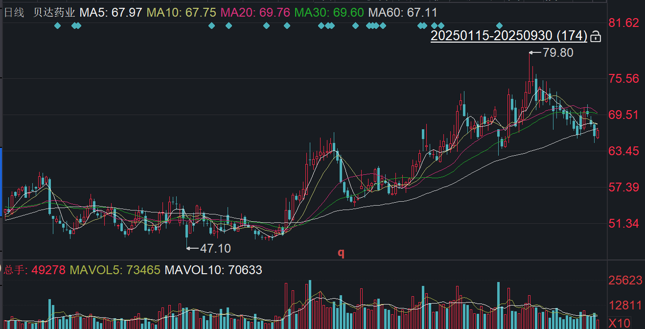 二级市场上,截至9月30日收盘,贝达药业上涨1.53%报66.81元/股,总市值为281.09亿元,今年来公司股价上涨约24%。