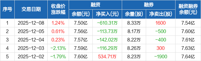 贝达药业:连续4日融资净偿还累计982.35万元(12-08)