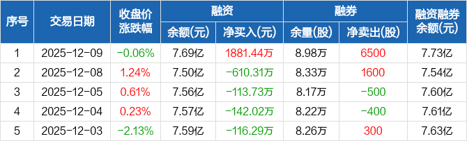 贝达药业:融资净买入1881.44万元,融资余额7.69亿元(12-09)