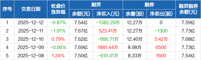 贝达药业:融资净偿还1382.29万元,融资余额7.54亿元(12-12)