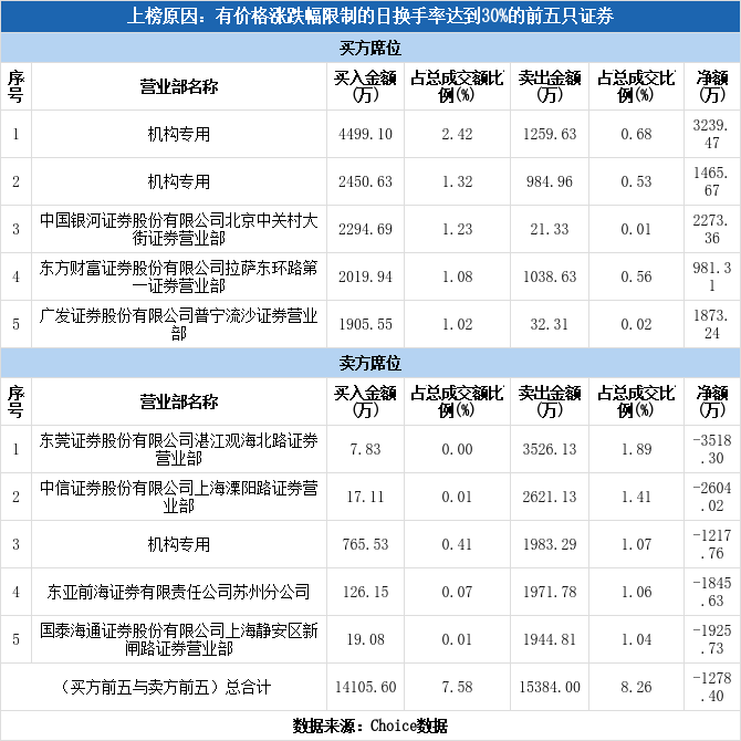 多主力现身龙虎榜,中富通上涨5.00%(11-19)