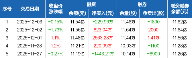兴齐眼药:融资净偿还229.96万元,融资余额11.54亿元(12-03)