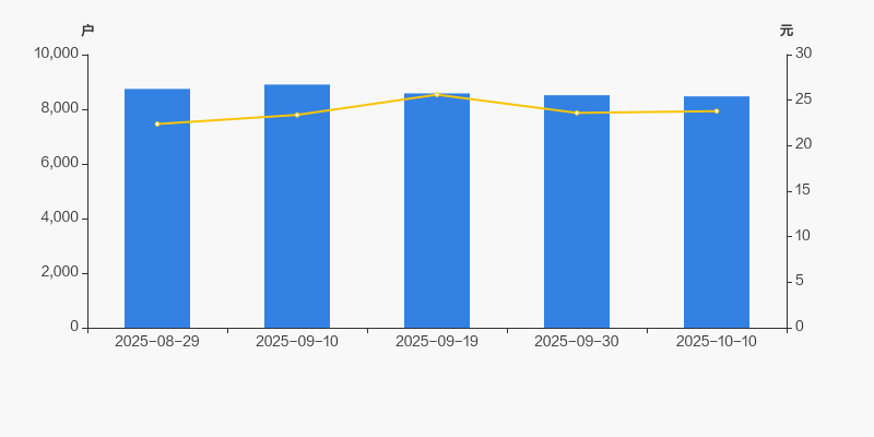 自2025年9月10日以来,公司股东户数连续3期下降,截至目前减幅为4.84%。2025年9月10日至2025年10月10日区间股价上涨1.75%。