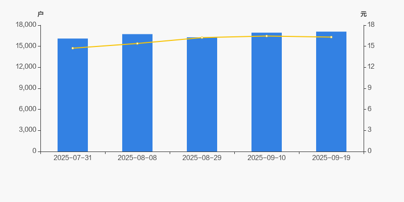 截至2025年9月19日,公司最新总股本为1.71亿股,且均为流通股。户均持有流通股数量由上期的1.01万股下降至1万股,户均流通市值16.33万元。