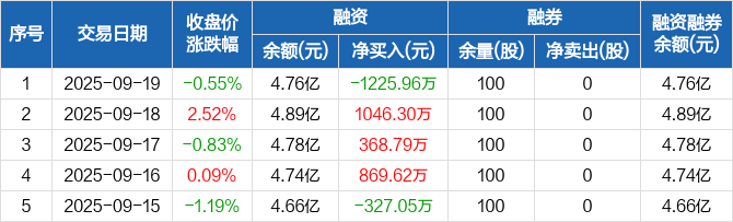 美联新材:融资净偿还1225.96万元,融资余额4.76亿元(09-19)